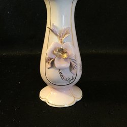 Vaas, China en porselein. Roze-groen-blauw. Hoogte 32 cm. 15 cm in diameter. Fräld guldsmed