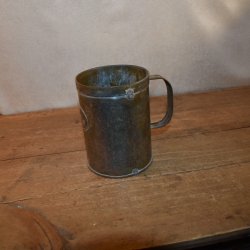 Een mooie oude antieke maatbeker in blik