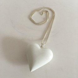 Royal Copenhagen Sterling Sølv Halskæde med Hvidt Hjertevedhæng af Porcelæn.