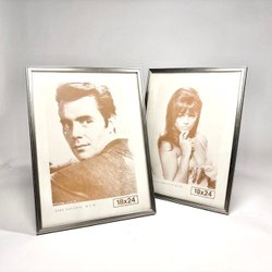 Paar portretframes groter in zilvermetaal en kunststof uit de jaren 1960