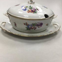 Royal Copenhagen Saksisk Blomst Let Terrin No 493/1666 med underfad No 493/1671