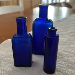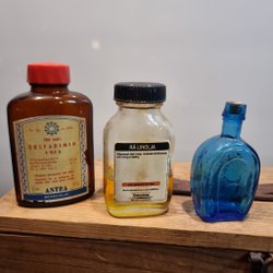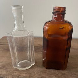 • Antika medicinflaskor i bruntonat glas