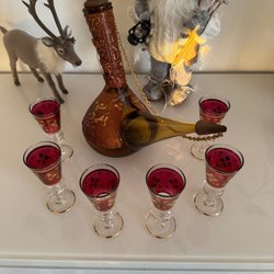 Flaskor och karaffer i glas är mer än bara praktiska behållare - de är konstverk som tillför en touch av raffinemang och stil till ditt hem. Genom att välja dessa vackra glasföremål kan du ge din inredning en subtil men betydelsefull förändring. Placera en vacker karaff på matsalsbordet eller använd eleganta glasflaskor som dekorativa accentföremål för att skapa en inbjudande atmosfär och locka uppmärksamhet till din unika stil. Exempel på flaskor och karaffer i glas som du kan hitta på Tradera: