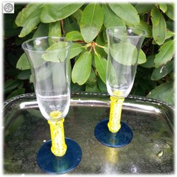 5 hoge champagne glazen - verschillende blauwe decoraties - gepersonaliseerd - Sterke drank glazen