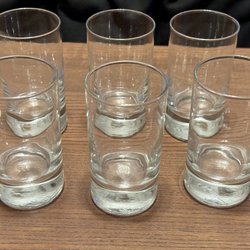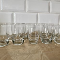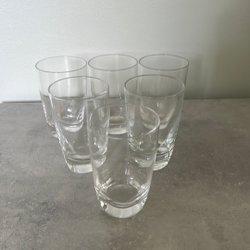 ORREFORS 10 GLAZEN MET VIERKANTE VOET DIE OVERGAAT IN EEN AFGERONDE BOVENKANT. AFMETINGEN OP DE FOTO