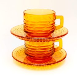 Kop met 2 schotels Vereco amberkleurig glas jaren 70