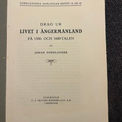 Drag Ur Livet I Ångermanland På 1500- Och 1600-Talen door Johan Nordlander, 1934