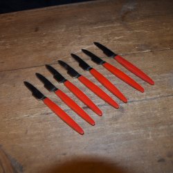 7 schaaldierenmessen met rode bakelieten handvatten