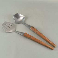 Saladebestek RVS Teak jaren 70