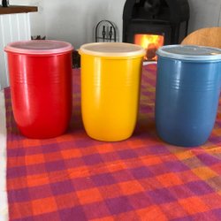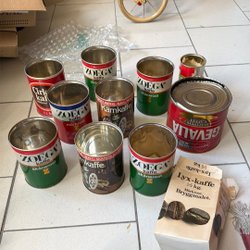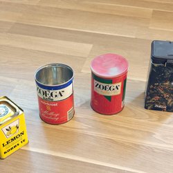 Begagnade retroburkar för kaffe, te och mer