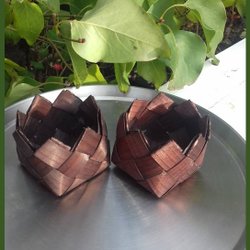 Het paar gevlochten afgebroken bruine suikerkommen in uitstekende staat