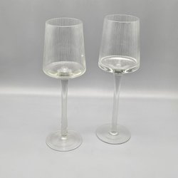 2 kandelaars op voet - Ljuslykta Glas Ränder - Retro Lantaarn theelicht