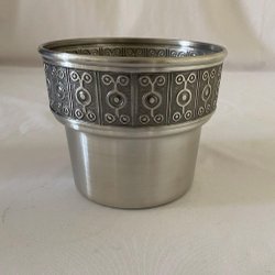 Bijzondere buitenpot van tin. Haugrud Pewter Noorwegen 11,5 cm hoog. Diameter 14 cm Nieuw ongebruikt