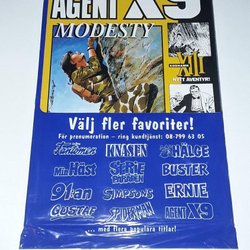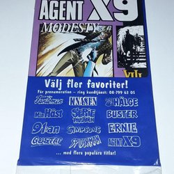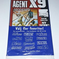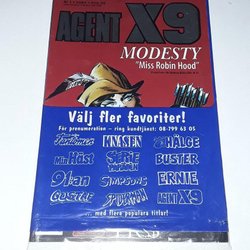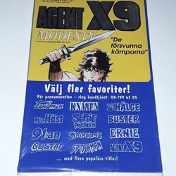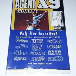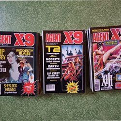Dyk ner i en värld av hemliga uppdrag, farliga skurkar och oförglömliga äventyr med Agent X9 serietidningar. Sedan dess debut har Agent X9 varit i framkant av spännings- och äventyrsgenren, och skapat en stark följarskara av hängivna läsare genom åren. Med dess fängslande berättelser och levande illustrationer har Agent X9 blivit mer än bara en serietidning – den är en institution inom agentgenren. Varje upplaga erbjuder läsaren en biljett till en värld av internationellt spionage, där varje sida överskrider den nästa i spänning. Agent X9 har gett oss många minnesvärda stunder genom klassiska titlar som "De förrädiska diamanterna" och "Jakten på den försvunna skatten". Dessa tidningar, rika på action och intriger, har gjort Agent X9 till en av de mest älskade serietidningarna genom tiderna. Med en perfekt blandning av spänning, drama och äventyr har Agent X9 alltid lyckats hålla sina läsare på tåspetsarna, ivriga att veta vad som kommer härnäst.
