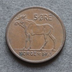 NORGE - 5 øre 1963 - KM # 405 - Brons