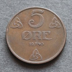 NORGE - 5 øre 1940 - KM # 368 - Brons
