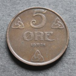 NORGE - 5 öre 1928 - KM # 368 - Brons - Oplage: 848.000