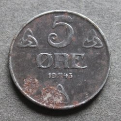 NORGE - 5 öre 1943 - KM # 388 - IJzer