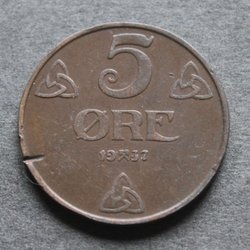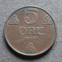 NORGE - 5 öre 1932 - KM 368 - Brons - Oplage: 500.000