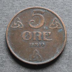 NORGE - 5 öre 1930 - KM 368 - Brons