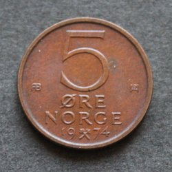 NORGE - 5 øre 1974 - KM # 415 - Brons