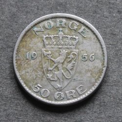 NORGE - 50 öre 1956 - KM 402 - CuNi