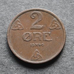 NORGE - 2 øre 1946 - KM 371 - Brons
