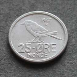 NOORWEGEN - 25 öre 1967 - KM # 407 - CuNi