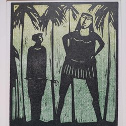 Åke HOLM Gesigneerde linoleumsnede "Saul och David", 1977