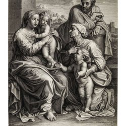 Heilige Familie met Sint-Elisabeth en de baby-baptist - Gravure