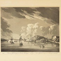 Gezicht op Göteborg vanuit de buitenwijk Masthugget - Johan Fredrik Martin - Gravure