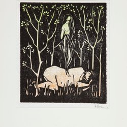 Eva is gemaakt van de rib van Adam - Åke Holm - Houtsnede