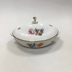 Royal Copenhagen Saksisk Blomst Let Terrin No. 1666 met onderschotel No. 493/1671