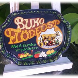 Buko Flödeost dienblad in blik met reclame voor de gemolken koe