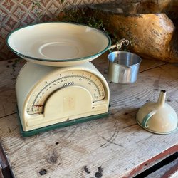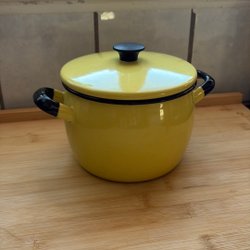 Kockums geëmailleerde Pot Geel Groen 22 cm Kockums K.E.R Sweden 1950s Plattelandsleven