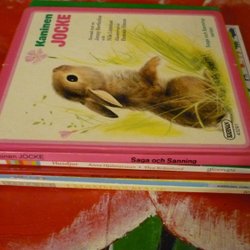 BOEK, 5 STUKS BOEKEN, JOCKEY KONIJN, IN MOEDER BUIK, SPEELSE PUPPY