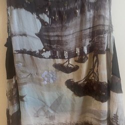 NIEUW prachtig stijlvol donkergrijs linnen met leuke print. Zacht en comfortabel!