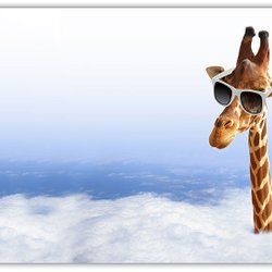 Giraffe kijkt over de wolken poster 50x70 cm