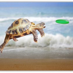 Schildpad jaagt op Frisbee Poster 50x70cm
