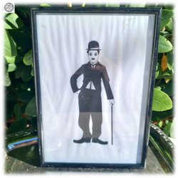Charlie Chaplin schilderij met print geglazuurd en ingelijst. Prima staat