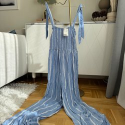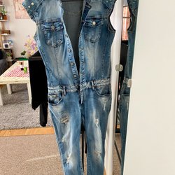En jumpsuit eller playsuit består av byxor och tröja i ett plagg. Jumpsuits har långa ben och kan även ha långa ärmar, medan en playsuit har kortare ben men även dessa kan vara långärmade. På Tradera kan man hitta annonser för många olika modeller av jumpsuits och playsuits, både använda och i nyskick.
