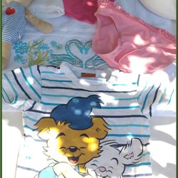 Kledingpakket 3 - 9 maanden, truien, body's, t-shirts, rokken, tops, etc