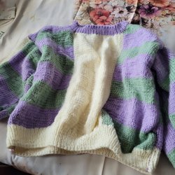Paarse, groene, witte trui