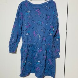 Blauwe jurk met kauwgomprint, maat 140, Villervalla