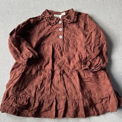 Fløss bruine jurk met een schattige geborduurde kraag maat 80