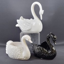 3st porseleinen potten - Svanar - Buitenhoes - Bloempotten