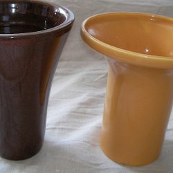 2 st Hoge Vazen/Bloempotten Fijne Keramiek Retrokleur Bruin Mosterdgeel