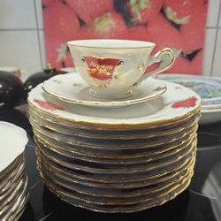 Stemar theekop met schotel en borden