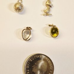Acht vintage sterling zilveren bedels + een metalen bedel