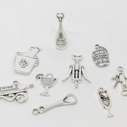 Fantastische set bedels/hangers met wijnthema in 9 stuks zilver!!!